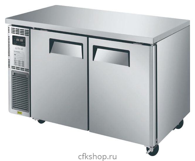 Морозильный стол Turbo air KUF15-2P-750 серии K используется на предприятиях общественного питания и торговли для кратковременного хранения предварительно замороженных пищевых продуктов, а также раскатки теста и обработки ингридиентов для приготовления блюд. Модель оснащена встоенным холодильным агрегатом, столешницей и морозильной камерой с 2 распашными дверьми. Вертикально ориентированный корпус за исключением задней стенки, фронтальная облицовка дверей, столешница и напрвляющие выполнены из высококачественной нержавеющей стали SUS439 производства Posco, термоизоляция – из пенополиуретана высокой плотности, испаритель с антикоррозийным покрытием.
