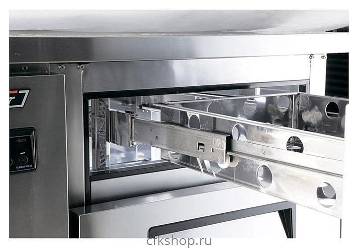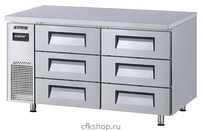 Морозильный стол Turbo air KUF15-3D-6 состоит из рабочей поверхности, на которой можно раскатывать тесто и обрабатывать ингредиенты для приготовления блюд, и камеры, предназначенной для заморозки и хранения продуктов, полуфабрикатов и мороженого на предприятиях пищевой промышленности, общественного питания и торговли. Корпус выполнен из нержавеющей стали с применением пожаробезопасных стенок толщиной 60 мм и уплотнения из теплоэффективного АБС-пластика (акрилонитрилбутадиенстирола), не пропускающего конденсата, оборотная сторона и низ - из гальванизированной стали, пол - из нержавеющей стали с алюминиевыми вставками по бокам и сзади, 4 регулируемые ножки - из нержавеющей стали.