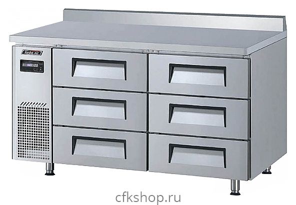 Морозильный стол Turbo air KWF15-3D-6-700 предназначен для обработки, охлаждения, заморозки и длительного хранения пищевых продуктов на предприятиях общественного питания и торговли. Модель оснащена 6 ящиками и 4 регулируемыми ножками. Корпус выполнен из нержавеющей стали (гальванизированная сталь на оборотной стороне и внизу), пол - из нержавеющей стали с алюминиевыми вставками по бокам и сзади, тройные направляющие ящиков - из высококачественной нержавеющей стали, уплотнение - из ABS-пластика.