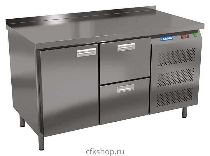Морозильный стол КАМИК СМБ-12147 используется на предприятиях общественного питания и торговли для заморозки и длительного хранения продуктов, полуфабрикатов и мороженого. Конструкция разделена на секции, каждая секция с дверью, оснащена полкой сетчатой и парой направляющих. Корпус выполнен из нержавеющей стали AISI 430.