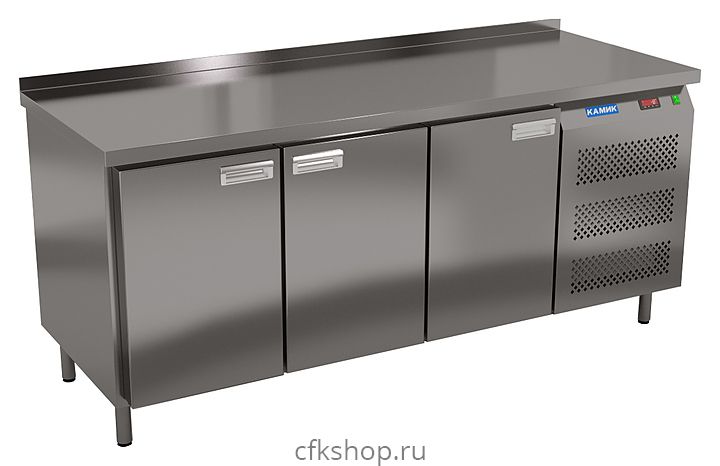 Морозильный стол КАМИК СМБ-301856 используется на предприятиях общественного питания и торговли для заморозки и длительного хранения продуктов, полуфабрикатов и мороженого. Конструкция разделена на секции, каждая секция с дверью, оснащена полкой сетчатой и парой направляющих. Корпус выполнен из нержавеющей стали AISI 430.
