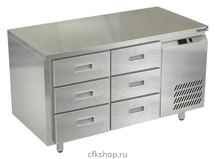 Морозильный стол Техно-ТТ СПБ/М-123/06-1306 предназначен для раскатки теста, обработки, заморозки и долговременного хранения продуктов, полуфабрикатов, напитков и мороженого на предприятиях общественного питания и торговли. Модель оснащена 2 секциями с 6 ящиками, направляющими с доводчиками (Австрия) и круглыми ножками, регулируемыми по высоте на 50 мм (Италия). Корпус и столешница выполнены из нержавеющей стали AISI 430, задняя стенка и дно - из оцинкованной стали.