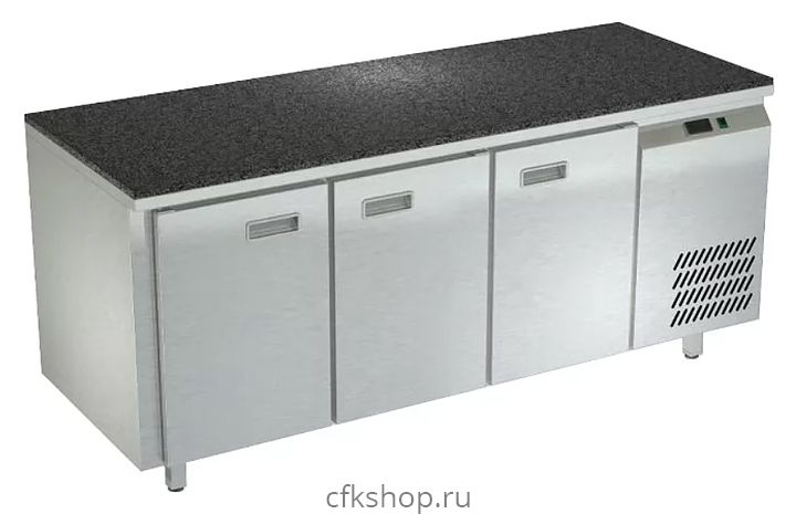 Морозильный стол Техно-ТТ СПБ/М-321/30-1806 предназначен для раскатки теста, обработки, заморозки и долговременного хранения продуктов, полуфабрикатов, напитков и мороженого на предприятиях общественного питания и торговли. Модель оснащена 3 секциями с 3 дверьми и регулируемой полкой-решеткой, петлями-доводчиками (Польша) и круглыми ножками, регулируемыми по высоте на 50 мм (Италия). Корпус выполнен из нержавеющей стали AISI 430, задняя стенка и дно - из оцинкованной стали, столешница - из камня.