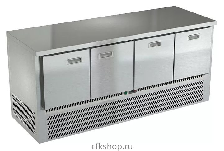 Морозильный стол Техно-ТТ СПН/М-122/22-1907 предназначен для раскатки теста, обработки, заморозки и долговременного хранения продуктов, полуфабрикатов, напитков и мороженого на предприятиях общественного питания и торговли. Модель оснащена компрессором, произведенным в Испании, 2 дверями с доводчиками (Польша), 2 регулируемыми по высоте полками-решетками, 2 гастронормированными ящиками, направляющими с доводчиками (Австрия) и регулируемыми опорными ножками. Корпус и столешница выполнены из нержавеющей стали AISI 430, задняя стенка и дно - из оцинкованной стали.