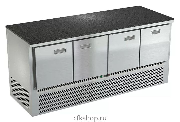 Морозильный стол Техно-ТТ СПН/М-322/31-1907 предназначен для раскатки теста, обработки, заморозки и долговременного хранения продуктов, полуфабрикатов, напитков и мороженого на предприятиях общественного питания и торговли. Модель оснащена компрессором, произведенным в Испании, 3 дверями с доводчиками (Польша), 3 регулируемыми по высоте полками-решетками, 1 гастронормированным ящиком, направляющими с доводчиками (Австрия) и регулируемыми опорными ножками. Корпус выполнен из нержавеющей стали AISI 430, задняя стенка и дно - из оцинкованной стали, столешница - каменная.
