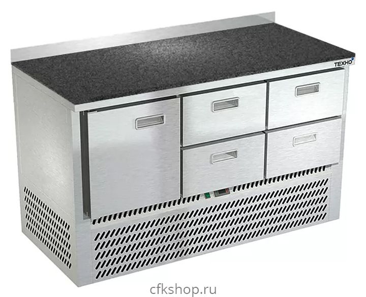 Морозильный стол Техно-ТТ СПН/М-422/14-1406 предназначен для раскатки теста, обработки, заморозки и долговременного хранения продуктов, полуфабрикатов, напитков и мороженого на предприятиях общественного питания и торговли. Модель оснащена компрессором, произведенным в Испании, 1 дверью с доводчиком (Польша), 1 регулируемой по высоте полкой-решеткой, 4 гастронормированными ящиками, направляющими с доводчиками (Австрия) и регулируемыми опорными ножками. Корпус выполнен из нержавеющей стали AISI 430, задняя стенка и дно - из оцинкованной стали, столешница - каменная.