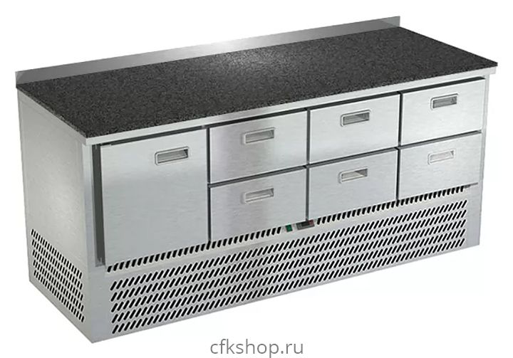 Морозильный стол Техно-ТТ СПН/М-422/16-1906 предназначен для раскатки теста, обработки, заморозки и долговременного хранения продуктов, полуфабрикатов, напитков и мороженого на предприятиях общественного питания и торговли. Модель оснащена компрессором, произведенным в Испании, 1 дверью с доводчиком (Польша), 1 регулируемой по высоте полкой-решеткой, 6 гастронормированными ящиками, направляющими с доводчиками (Австрия) и регулируемыми опорными ножками. Корпус выполнен из нержавеющей стали AISI 430, задняя стенка и дно - из оцинкованной стали, столешница - каменная.