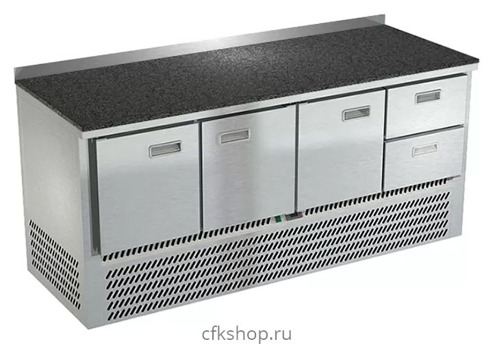 Морозильный стол Техно-ТТ СПН/М-422/32-1906 предназначен для раскатки теста, обработки, заморозки и долговременного хранения продуктов, полуфабрикатов, напитков и мороженого на предприятиях общественного питания и торговли. Модель оснащена компрессором, произведенным в Испании, 3 дверями с доводчиками (Польша), 3 регулируемыми по высоте полками-решетками, 2 гастронормированными ящиками, направляющими с доводчиками (Австрия) и регулируемыми опорными ножками. Корпус выполнен из нержавеющей стали AISI 430, задняя стенка и дно - из оцинкованной стали, столешница - каменная.