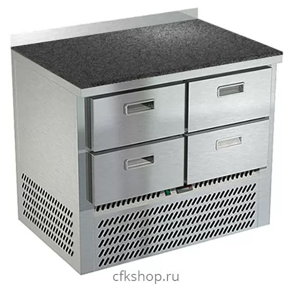 Морозильный стол Техно-ТТ СПН/М-423/04-1006 предназначен для раскатки теста, обработки, заморозки и долговременного хранения продуктов, полуфабрикатов, напитков и мороженого на предприятиях общественного питания и торговли. Модель оснащена компрессором, произведенным в Испании, 4 гастронормированными ящиками, направляющими с доводчиками (Австрия) и регулируемыми опорными ножками. Корпус выполнен из нержавеющей стали AISI 430, задняя стенка и дно - из оцинкованной стали, столешница - каменная.