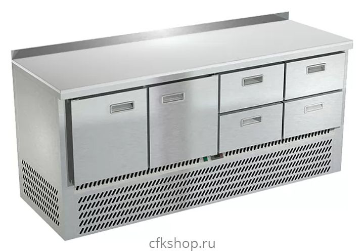 Морозильный стол Техно-ТТ СПН/М-622/24-1907 предназначен для раскатки теста, обработки, заморозки и долговременного хранения продуктов, полуфабрикатов, напитков и мороженого на предприятиях общественного питания и торговли. Модель оснащена компрессором, произведенным в Испании, 2 дверями с доводчиками (Польша), 2 регулируемыми по высоте полками-решетками, 4 гастронормированными ящиками, направляющими с доводчиками (Австрия) и регулируемыми опорными ножками. Корпус выполнен из нержавеющей стали AISI 430, задняя стенка и дно - из оцинкованной стали, столешница - из полипропилена.