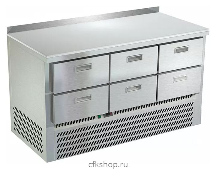 Морозильный стол Техно-ТТ СПН/М-623/06-1406 предназначен для раскатки теста, обработки, заморозки и долговременного хранения продуктов, полуфабрикатов, напитков и мороженого на предприятиях общественного питания и торговли. Модель оснащена компрессором, произведенным в Испании, 6 гастронормированными ящиками, направляющими с доводчиками (Австрия) и регулируемыми опорными ножками. Корпус выполнен из нержавеющей стали AISI 430, задняя стенка и дно - из оцинкованной стали, столешница - из полипропилена.