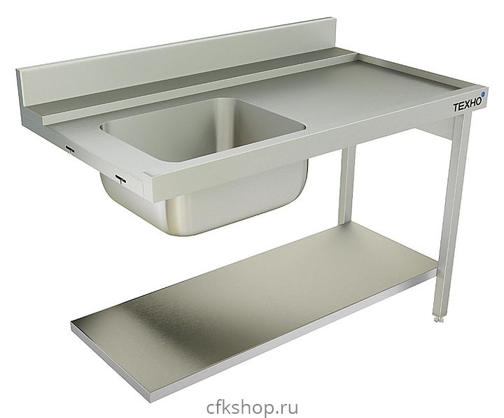 Навесной стол Техно-ТТ СПК-523/1307Л предназначен для совместного использования с посудомоечными машинами Apach для расстановки и хранения посуды и кухонного инвентаря, а также для мытья и ополаскивания продуктов и посуды в моечных отделениях на предприятиях общественного питания и торговли. Модель оснащена цельнотянутой мойкой, бортом, полкой и регулируемыми по высоте ножками. Разборный каркас выполнен из трубы 40х40х1,2 мм нержавеющей стали AISI 304, емкость цельнотянутая - из нержавеющей стали AISI 304, полка - из нержавеющей стали AISI 430.