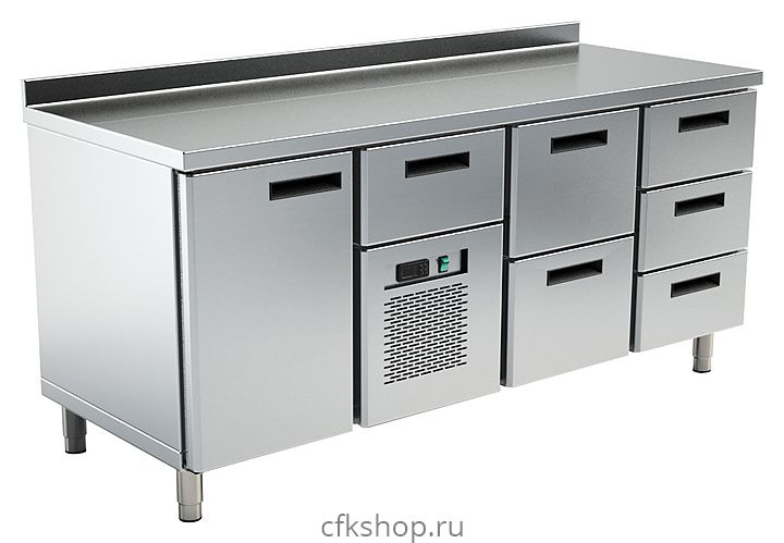 Охлаждаемый стол BSV-inox TRG 222D предназначен для охлаждения и хранения продуктов питания, а также для установки на столешницу теплового оборудования, такого как электрические плиты, мармиты, фритюрницы на предприятиях общественного питания. Модель оснащена цельнозаливным корпусом, отсек может комплектоваться дверью, двумя или тремя ящиками. Стол изготовлен из нержавеющей стали.