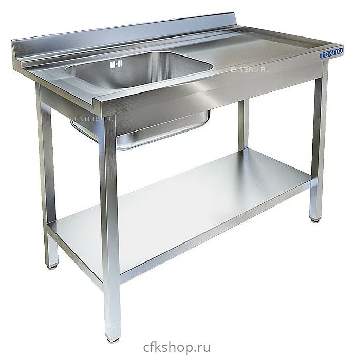 Приставной стол Техно-ТТ СПМ-533/1207Л предназначен для совместного использования с посудомоечными машинами для расстановки и хранения посуды и кухонного инвентаря, а также для мытья и ополаскивания продуктов и посуды в моечных отделениях на предприятиях общественного питания и торговли. Модель оснащена цельнотянутой емкостью, бортом и регулируемыми по высоте ножками. Разборный каркас выполнен из трубы 40х40х1,2 мм нержавеющей стали AISI 430, столешница, ванна и полка - из нержавеющей стали AISI 304.