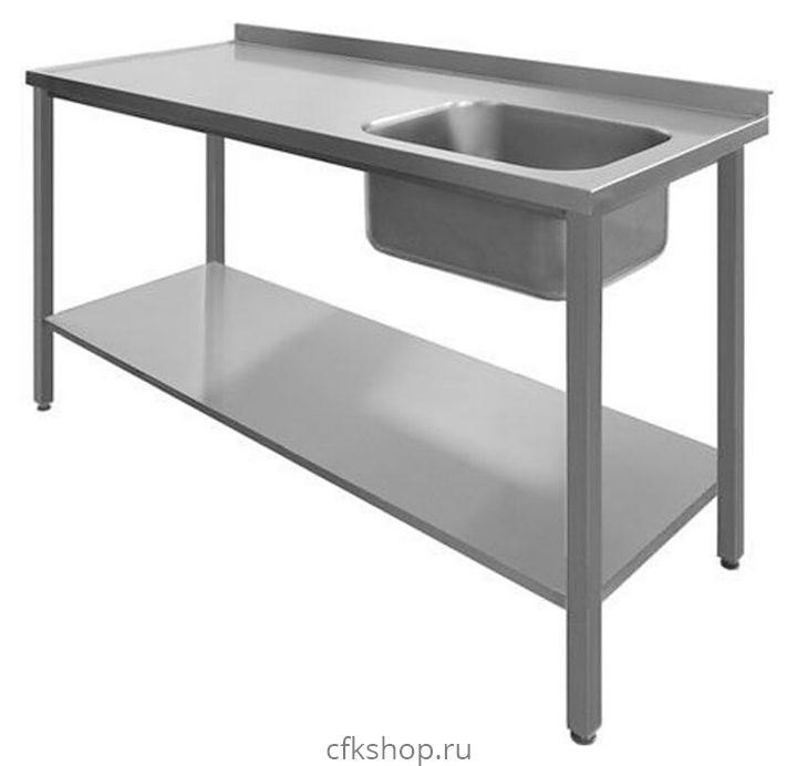 Приставной стол Техно-ТТ СПМ-533/907П предназначен для совместного использования с посудомоечными машинами для расстановки и хранения посуды и кухонного инвентаря, а также для мытья и ополаскивания продуктов и посуды в моечных отделениях на предприятиях общественного питания и торговли. Модель оснащена цельнотянутой емкостью, бортом и регулируемыми по высоте ножками. Разборный каркас выполнен из трубы 40х40х1,2 мм нержавеющей стали AISI 430, столешница, полка и ванна - из нержавеющей стали AISI 304.