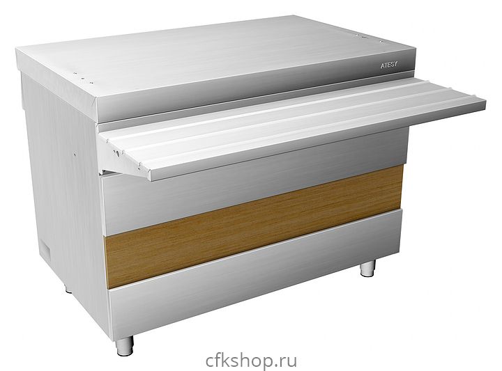 Производственный стол ATESY НС- 1500-02-О серии Ривьера используется на предприятиях общественного питания и торговли для разделывания и обработки пищевых продуктов, выкладки продуктов и напитков, а также в качестве вспомогательной поверхности для кухонного оборудования. Нижняя часть нижней части модуля оборудована отсеком для хранения посуды и инвентаря с 1 полкой и дверями-«купе». Столешница выполнена из нержавеющей стали AISI 430 толщиной 0,8 мм, столешница дополнительно укреплена листом ламинированной ДСП толщиной 16 мм с внутренней стороны.