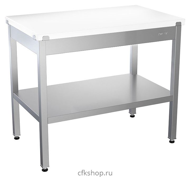 Производственный стол ATESY СРП-Л-1500.600-02 серии Люкс используется на предприятиях общественного питания и торговли для разделывания и обработки пищевых продуктов, а также в качестве вспомогательной поверхности для кухонного оборудования. Столешница выполнена из полипропилена толщиной 30 мм, полка - из нержавеющей стали AISI 304, стойки - из трубы 40х40 мм из нержавеющей стали AISI 304.
