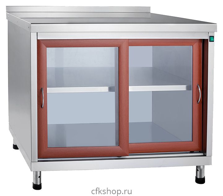 Конструкция выполнена из нержавеющей стали, дверцы - из стекла в раме из МДФ.