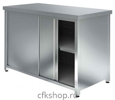 Производственный стол Assum ССПК-С-12/6 серии Стандарт предназначен для раскатки теста и обработки ингредиентов для приготовления блюд, а также хранения посуды и кухонного инвентаря на предприятиях общественного питания и торговли. Модель оснащена прямоугольной столешницей, тумбой с дверьми-купе и промежуточной сплошной полкой. Опоры выполнены из углового профиля из оцинкованной стали, столешница и двери – из высококачественной нержавеющей стали AISI 430, боковые стенки, дно, двери и полка – из оцинкованной стали, подпятники опор – из прочного пластика.