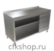 Производственный стол Cryspi СРПН Э1 РП предназначен для обработки ингредиентов для приготовления блюд, раскатки теста и хранения посуды, кухонных принадлежностей, сухих продуктов и напитков на предприятиях пищевой промышленности, общественного питания и торговли. Стол изготовлен из нержавеющей стали AISI 430, сварной каркас выполнен с применением профильной трубы, столешница усилена листом ЛДСП.