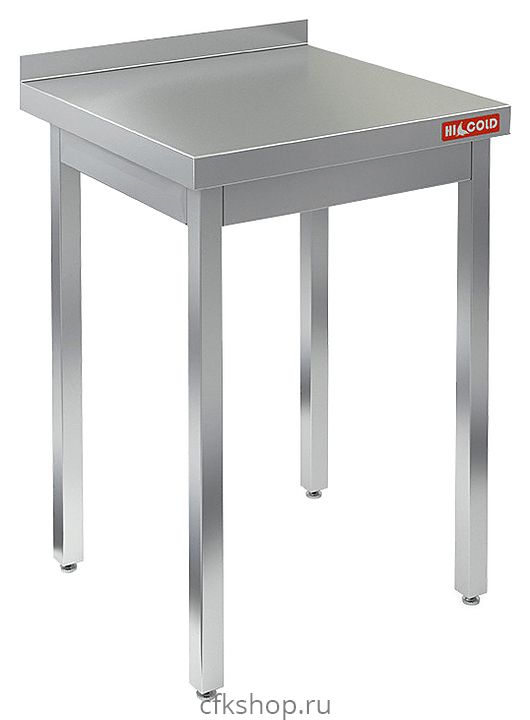 Столешница выполнена из нержавеющей стали толщиной 0,8 мм, усилена листом ДСП, опорные ножки - из трубы 40х40 мм из нержавеющей стали.