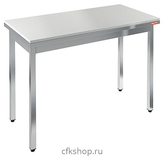 Столешница выполнена из полипропилена, опорные ножки - из трубы 40х40 мм из нержавеющей стали.