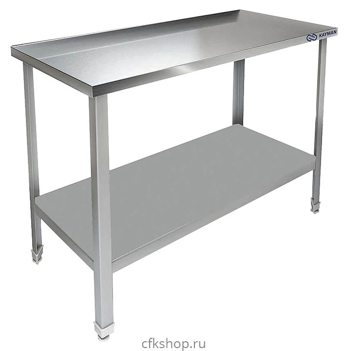 Производственный стол KAYMAN СЦ-242/0606 используется на предприятиях общественного питания и торговли для раскатки теста и обработки ингредиентов для приготовления блюд, а также как дополнительное место для установки и хранения кухонных приборов, инвентаря и сухих продуктов. Модель оснащена сплошной полкой-накладкой. Каркас изготовлен из нержавеющего уголка AISIS 430, толщиной 1,5 мм, полка из нержавеющей стали AISI 430, толщиной 0,8 мм, столешница без борта - из нержавеющей стали AISI 430, толщиной 0,8 мм, усиление ЛДСП 16 мм.