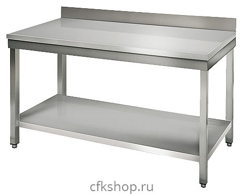 Производственный стол Kocateq SAT107A предназначен для раскатки теста и обработки ингредиентов для приготовления блюд, хранения посуды и кухонной утвари на предприятиях общественного питания и торговли. Столешница выполнена из нержавеющей стали AISI 304 толщиной 1 мм, усилена вкладкой из ДСП с ламинированием открытой сторон, каркас и полка - из нержавеющей стали AISI 201, ножки - из трубы квадратного сечения 40x40 мм, пятки - из пластика.