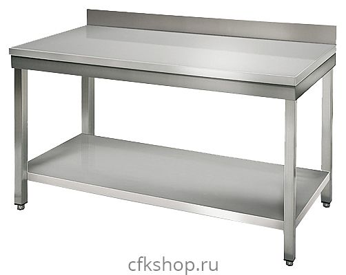 Производственный стол Kocateq SAT126A предназначен для раскатки теста и обработки ингредиентов для приготовления блюд, хранения посуды и кухонной утвари на предприятиях общественного питания и торговли. Столешница выполнена из нержавеющей стали AISI 304 толщиной 1 мм, усилена вкладкой из ДСП с ламинированием открытой сторон, каркас и полка - из нержавеющей стали AISI 201, ножки - из трубы квадратного сечения 40x40 мм, пятки - из пластика.
