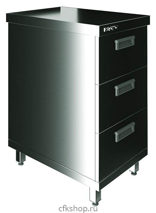 Производственный стол Restoinox СП3Я-4/6 предназначен для обработки продуктов питания, раскатки теста и хранения кухонного инвентаря, также для размещения малогабаритного оборудования на предприятиях общественного питания и торговли. Модель оснащена регулируемыми по высоте опорами и выдвижными ящиками. Ножки выполнены из квадратной трубы 40х40 мм из нержавеющей стали Aisi 430, корпус, рабочая поверхность и ящики - из нержавеющей стали Aisi 430, задняя стенка - из оцинкованной стали, столешница усилена листом ЛДСП.