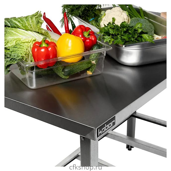Производственный стол Кобор СР-95/60 предназначен для раскатки теста, обработки ингредиентов для приготовления блюд и установки кухонных приборов на предприятиях общественного питания и торговли. Каркас выполнен из оцинкованного уголка, столешница - из нержавеющей стали AISI 430 с усилением из ЛДСП.