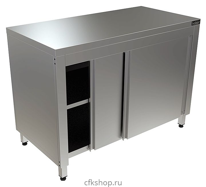 Стол-тумба Кобор СТ-100/60/К предназначен для обработки различных продуктов и раскатки теста, а также хранения кухонной утвари на предприятиях общественного питания, в пекарнях, кондитерских и гипермаркетах. Столешница выполнена из нержавеющей стали AISI 430 и ЛДСП. Прочность и долговечность обеспечивается сварным каркасом. Опоры регулируются для устранения наклона стола.
