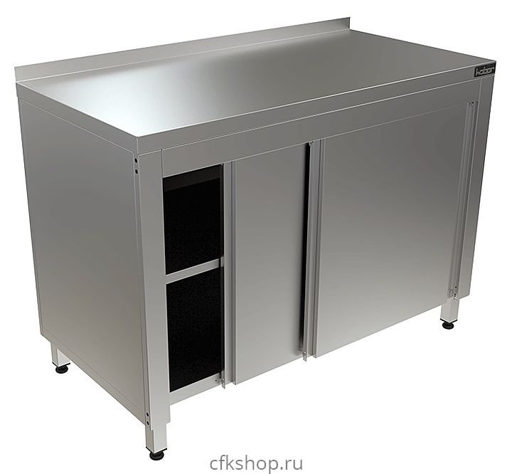 Стол-тумба Кобор СТБ-100/70/К предназначен для обработки различных продуктов и раскатки теста, а также хранения кухонной утвари на предприятиях общественного питания, в пекарнях, кондитерских и гипермаркетах. Столешница выполнена из нержавеющей стали AISI 430 и ЛДСП. Прочность и долговечность обеспечивается сварным каркасом. Опоры регулируются для устранения наклона стола.