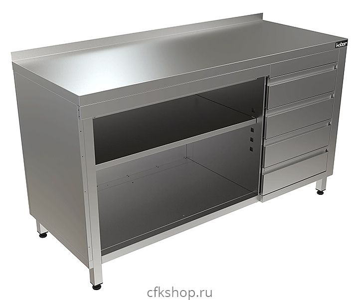 Стол-тумба Кобор СТБ/1-120/60/О произведена из высококачественной нержавеющей стали, что позволяет использовать предмет в различных цехах. Во избежание прогибов столешница усилена листом ЛДСП толщиной 16 мм. Ножки изделия регулируются по высоте, для исключения проблем с неровным напольным покрытием, предотвращая наклон рабочей поверности.