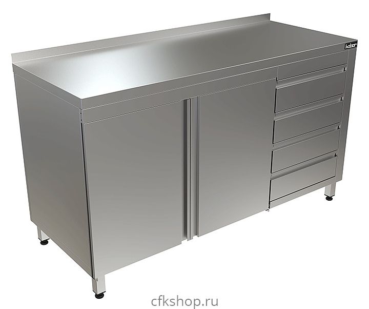Стол-тумба Кобор СТБ/1-120/60/Р произведена из высококачественной нержавеющей стали, что позволяет использовать предмет в различных цехах. Во избежание прогибов столешница усилена листом ЛДСП толщиной 16 мм. Ножки изделия регулируются по высоте, для исключения проблем с неровным напольным покрытием, предотвращая наклон рабочей поверности.
