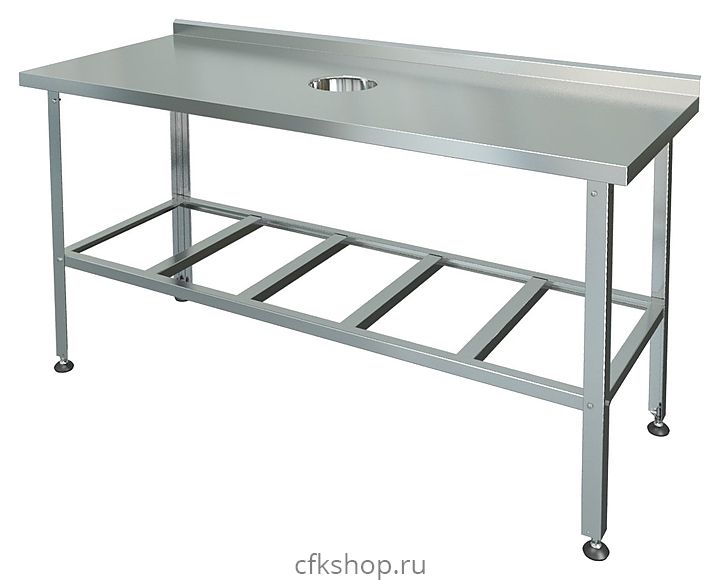 Производственный стол Марихолодмаш СПСО-1-0,6-1,2 предназначен для обработки пищевых ингредиентов и сбора пищевых отходов на предприятиях общественного питания и торговли. Рабочая поверхность, усиленная ЛДСП толщиной 16 мм, выполнена из нержавеющей стали AISI 430 толщиной 0,5 мм, каркас - из нержавеющей стали, ножки с регулируемыми опорами - из уголка 40х40 мм из оцинкованной стали толщиной 1 мм с подгибом краёв вовнутрь.