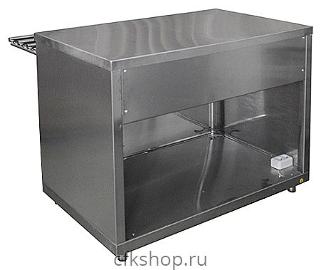 Производственный стол Пищевые Технологии Лира-Профи СН/ЛП используется в составе линий раздач для размещения хлебобулочных и кондитерских изделий, установки термостата с напитками на предприятиях общественного питания и торговли. Модель оснащена нишей для хранения инвентаря, двухгнездовой розеткой, направляющими для подносов и регулируемыми по высоте ножками. Корпус выполнен из нержавеющей стали.