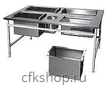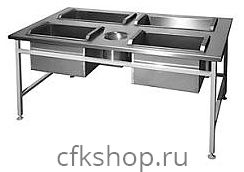 Производственный стол Проммаш СП-16 используется для очистки картофеля и других корнеплодов на предприятиях общественного питания и торговли. Модель оснащена стлещницей с отверстием для сбора отходов и 4 съемными емкостями. Столешница выполнена из нержавеющей стали, каркас - оцинкованная сталь.