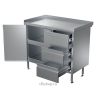 Производственный стол Проммаш СПЯС-1000/600 используется на морских судах, пароходах, пассажирских лайнерах и т.д. для обработки ингредиентов для приготовления блюд, а также может использоваться в качестве дополнительного места для установки кухонных приборов. Модель оснащена 3 выдвижными ящиками, распашной дверкой с 2 полками и бортом с 3-х сторон. Оборудование выполнено из нержавеющей стали 12Х18H10T.