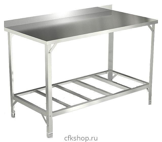 Производственный пристенный стол Техно-ТТ AppetiTT СПРП-1207ц предназначен для обработки продуктов питания, раскатки теста и хранения кухонного инвентаря на предприятиях общественного питания и торговли. Модель оснащена бортом и полкой-решеткой. Столешница выполнена из нержавеющей стали AISI 430, подложка - из ДСП, каркас разборный - из оцинкованной стали.