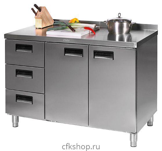 Производственный стол ТММ СКДЗ-2/1500/600 используется на предприятиях общественного питания и торговли для обработки продуктов питания, раскатки теста и хранения кухонного инвентаря. Корпус выполнен из нержавеющей стали, задняя стенка - из оцинкованной стали.
