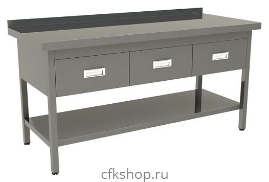 Производственный закрытый стол Restoinox СПЯ-17/6-БП серии 600 предназначен для обработки продуктов питания, раскатки теста и хранения кухонного инвентаря, также для размещения малогабаритного оборудования на предприятиях общественного питания и торговли. Модель оснащена выдвижными ящиками и сплошной полкой из нержавеющей стали. Ножки выполнены из квадратного профиля нержавеющей стали Aisi 430 40x40 мм, рабочая поверхность и решетка - из нержавеющей стали Aisi 430, столешница усилена листом ЛДСП.