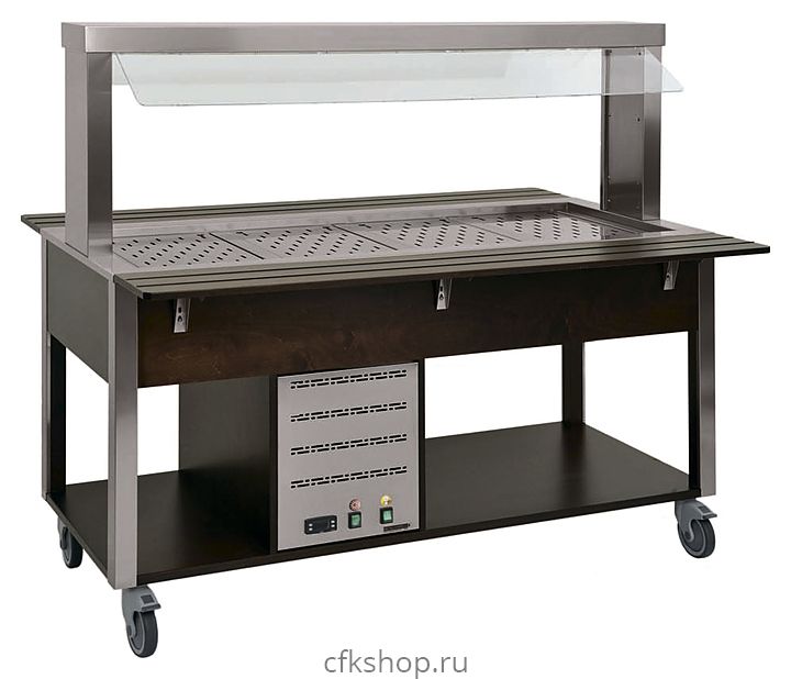 Шведский стол Metalcarrelli 6910.3-R предназначен для демонстрации и кратковременного хранения продуктов и готовых блюд при температуре их подачи на предприятиях общественного питания, а также в розничных торговых точках.