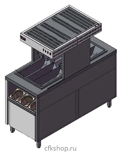 Тепловой стол Симеко СТ0614 используется на предприятиях общественного питания и торговли для временного хранения, поддержания в теплом состоянии и последующей раздачи уже готового картофеля фри. Модель оснащена разделителем для пакетиков и 2 распашными дверями. Оборудование выполнено из нержавеющей стали AISI 430.