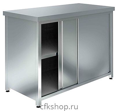 Стол-тумба Getinox СТП-1000х700 предназначен для обработки различных продуктов и раскатки теста, а также хранения кухонной утвари на предприятиях общественного питания, в пекарнях, кондитерских и гипермаркетах. Модель оснащена дверками-купе. Столешница, каркас, дверки, промежуточная и нижняя полки выполнены из высококачественной нержавеющей стали, столешница укреплена листом прочной герметизированной древесностружечной плиты с внутренней стороны.