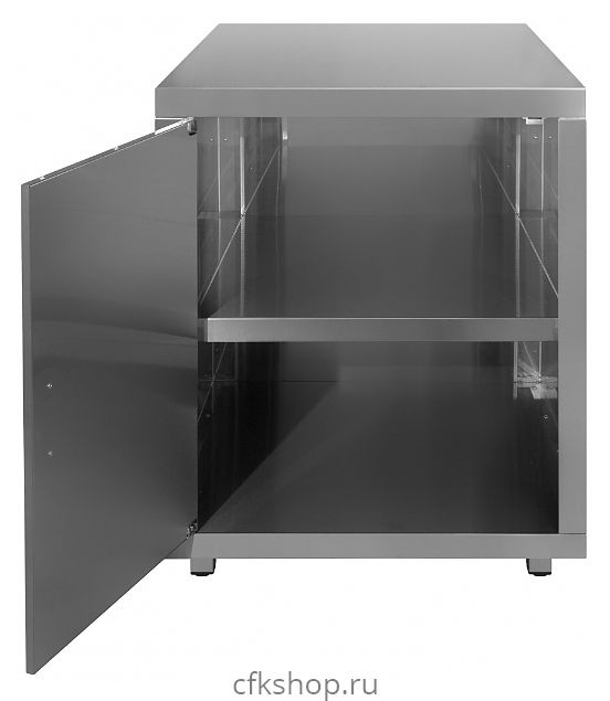 Универсальный стол-тумба Luxstahl СТУР1-5/6 предназначен для разделывания и нарезки пищевых продуктов, приготовления различных блюд, размещения оборудования и инвентаря на предприятиях общественного питания и торговли. Модель оснащена дверью, прямоугольной, усиленной фанерой, столешницей и полкой. Столешница, полка и задняя стенка выполнены из высококачественной нержавеющей стали AISI 430, каркас – из нержавеющей стали AISI 430.