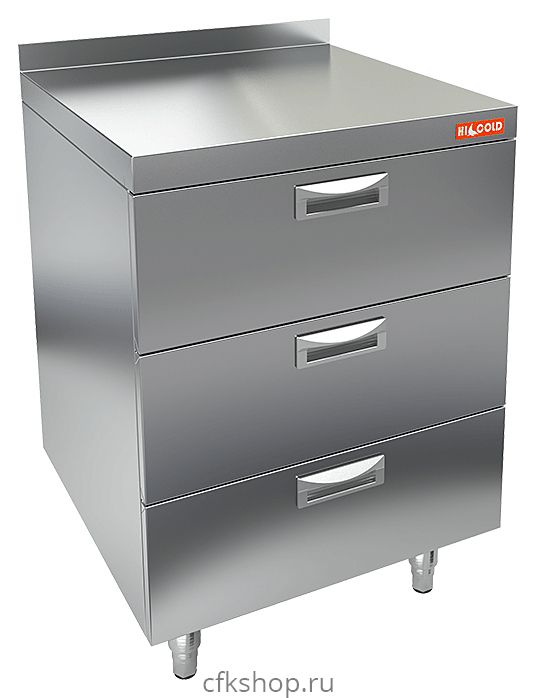 Закрытый стол HICOLD НБМТ 3-5/7Б используется на предприятиях общественного питания и торговли для комплектации барных стоек. Корпус выполнен из нержавеющей стали AISI 430, столешница - из нержавеющей стали AISI 430 толщиной 1 мм и усилена ДСП.