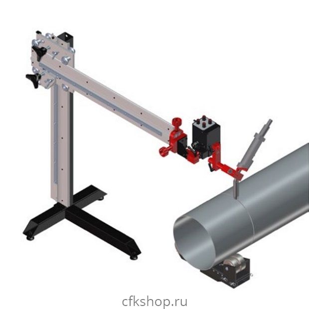 Держатель сварочной горелки или стойка для сварки - приспособление для фиксации сварочной горелки в нужном положении при сварке тел вращения. Держатель фиксирует горелку, что обеспечивает качественную и надежную сварку. Стойка обеспечивает полезный ход по горизонтали 560 мм и по вертикали 640 мм.