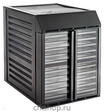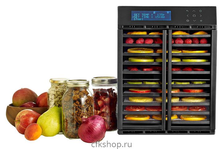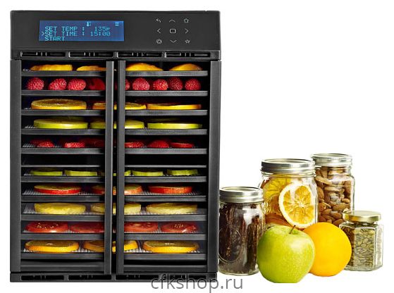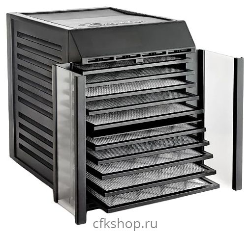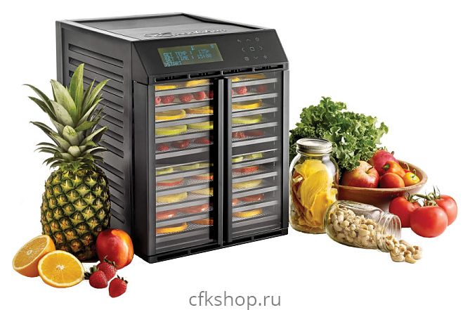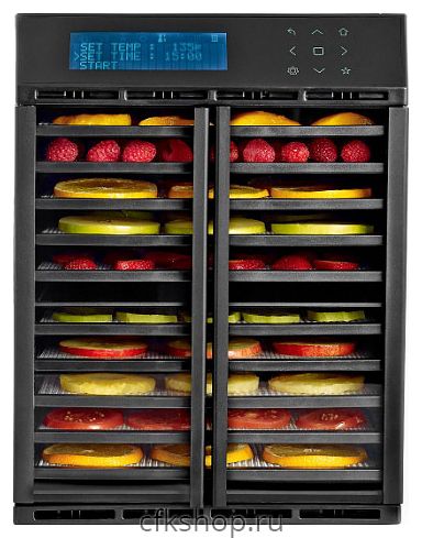 Дегидратор Excalibur RES10F предназначен для сушки овощей, фруктов, ягод, орехов, грибов и трав, расстойки теста, приготовления йогурта, вяления мяса и рыбы на предприятиях общественного питания и в домашних условиях. Модель оснащена расположенными в задней стенке 2 нагревательными элементами и 2 вентиляторами, 2 электронными термостатами, распашными дверьми и сенсорной панелью управления с жидкокристаллическим дисплеем. Лотки выполнены из высококачественного поликарбоната без содержания бисфенола А (BPA).
