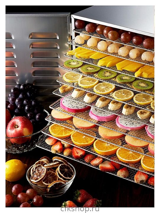 Дегидратор Kocateq DHFD10 используется на предприятиях общественного питания и торговли, в производственных цехах, а также в домашних условиях для сушки овощей, грибов, фруктов и ягод. Модель оснащена аналоговой панелью управления с термостатом. Корпус выполнен из нержавеющей стали Aisi 201, решетки - из нержавеющей стали Aisi 304.